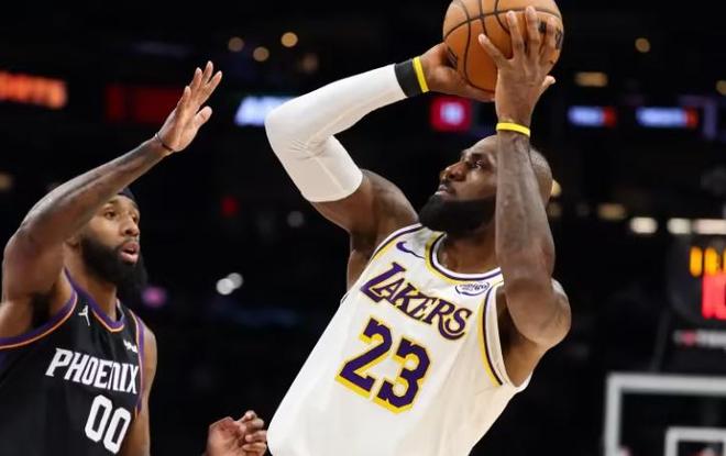 而这显然不是詹姆斯的灵光一现。在过去四场竞赛中,这位41岁的老将场均可以轰下25.5分、8个篮板和7次助攻,投篮命中率回暖至46.9%,真实命中率高达63.4%。