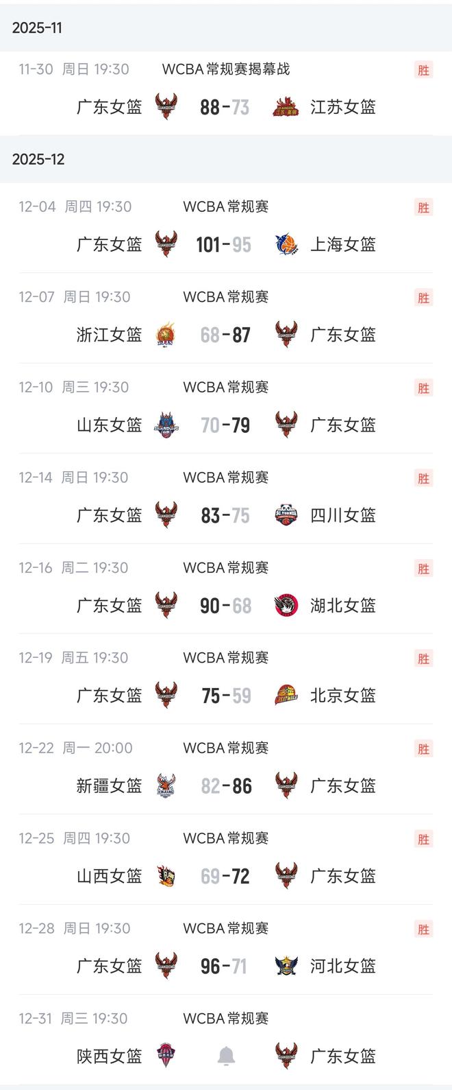 北京时间2025年12月29日消息。刚刚结束的一场WCBA女篮联赛常规赛,广东东莞女篮96-71,大比分战胜河北女篮。这样,本赛季开始后的10轮联赛,东莞队也是豪取一波十连胜。12月31日,广东女篮将客场迎战陕西,球队有望以一波十一连胜结束非常辉煌的2025自然年。——对于目前的这支广东女篮来说,实现了新老交替的流畅进步,可喜可贺。我们看到了一个进步飞快的杨舒予!