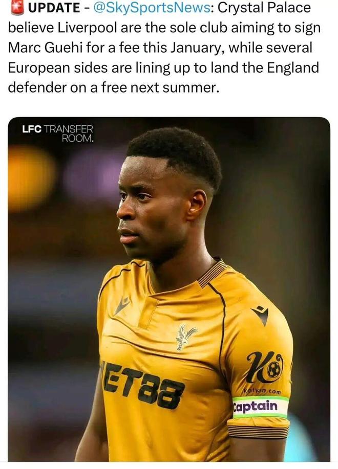 天体:水晶宫方面认为,利物浦是唯一可能在一月份出钱带走格伊的俱乐部。