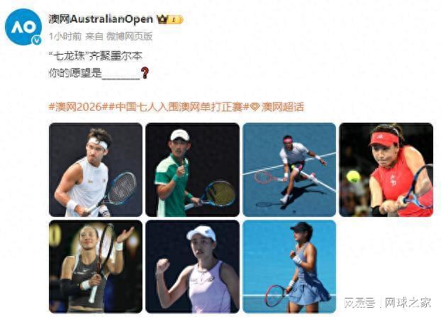 七人进入澳网单打正赛签表,澳网官方在第一时间送上祝愿之际,也给中国七人团取了一个相当吉利的名字——七龙珠。